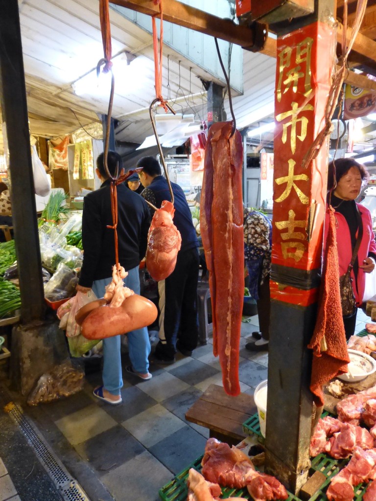 Several years ago I was in Thailand and had high hopes that I would experience it by unhinging my jaw and inviting all the food to jump in and have a party. I was sorely disappointed when I found myself with very little appetite—a side effect of the oppressive heat and humidity. Here in Taiwan I am blissfully voracious, it’s as though the travel gods decided a do-over could be granted and Taiwan was the place. Taiwan is a food-lover’s paradise, with open air markets, restaurants at every turn, and smells that range from delightful to detestable. So far, we’ve eaten well and been open to experiencing everything that takes our fancy. This includes both the unknown and the known—such as the hot pot we had for lunch the first day that was like a steaming hot bowl of “Bertie Botts Every Flavor Beans,” which for you non-Harry Potter fans, is like saying that you may get a delicious flavor of pink grapefruit in your mouth, but you may also get a mouth full of ear wax. The pink grapefruit of our hot pot: beef, tofu, cabbage, and straw mushroom all infused with the flavor of the savory broth. The ear wax: a soft, chocolate-colored cube that tasted faintly “meaty” to me and which we later discovered was duck blood tofu. Or the off-tasting and very pungent square of stinky tofu, which seems to be a real favorite here, judging by how often you get hit by the smell (but really, it doesn’t taste nearly as bad as it smells; then again, being half Asian, I’m not sure I am a fair judge of stinky or off-tasting).