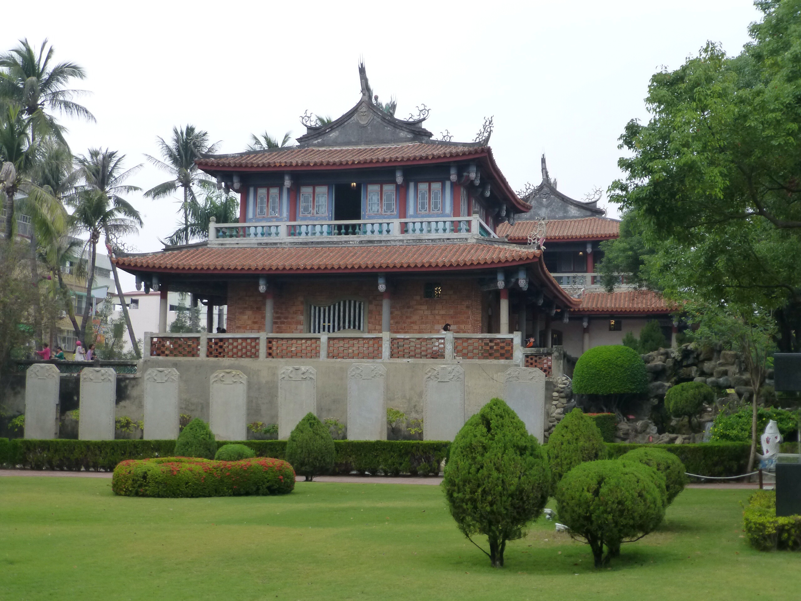 When I first arrived in Taipei, the weather was breathtakingly gorgeous, perhaps made more so by the fact that it was so frigid back home. However, since then, the weather has taken a turn for…well, not the worst as it’s still loads better than Portland, but definitely wetter and not the clear 70 degrees that it was when I arrived. Although we originally hoped to head to Taroko Gorge for some cycling, we’ve had to make alternate plans and head to a warmer and drier part of the country. That said, we hopped on a train and headed southwest to the city of Tainan. Going via a slower train (versus the high-speed rail) afforded us the opportunity to see more of Taiwan’s countryside, which is a varied landscape that alternates between old residential neighborhoods with community gardens, industrial areas, and lush farmland growing pineapples, bananas, and other local crops. Interestingly, the fruit trees had bags that encase the fruit to protect them from pests as they continue to grow and ripen. Imagine…pesticide-free fruit can be that simple.