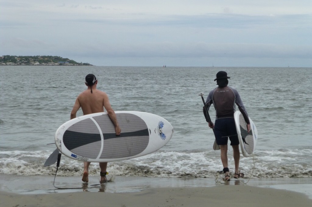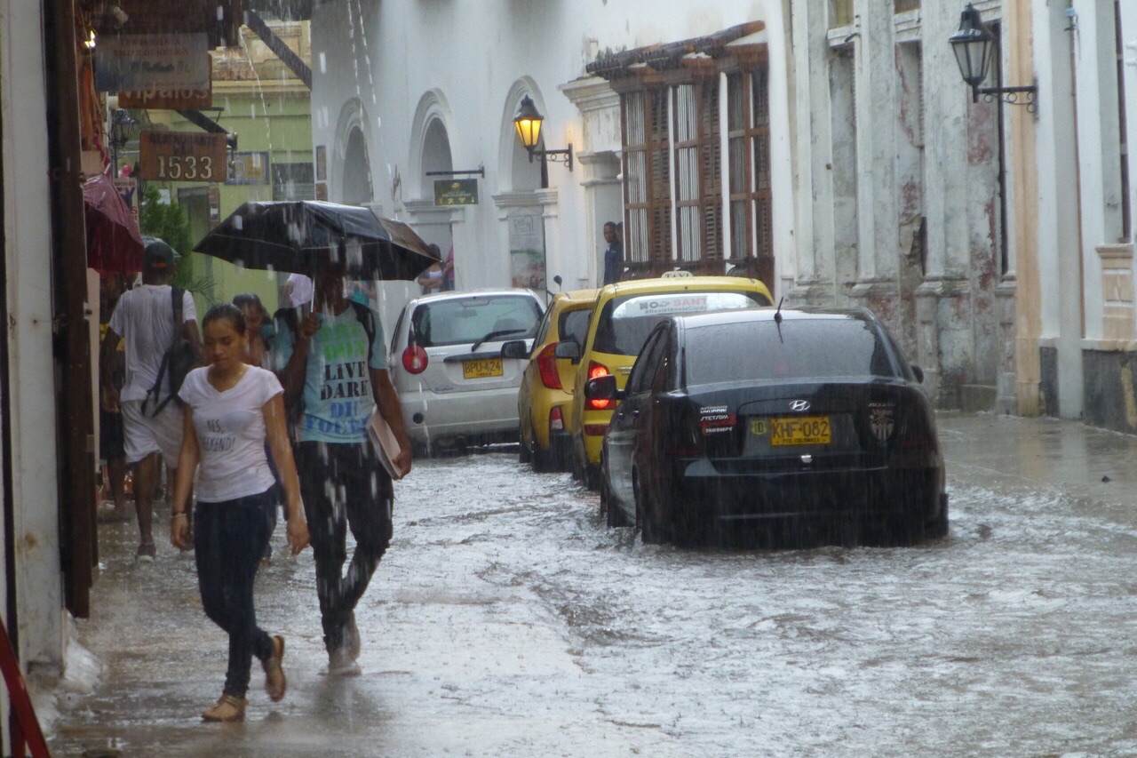 Up until our arrival, we had enjoyed the variable high-altitude weather that was alternately cool, warm, and dry—so stepping off the plane to Cartagena was like taking a huge belly flop into a hot bath. Our pace immediately slowed down to accommodate, with more activity in the morning and evening and siestas in the afternoon. As a result, we covered a lot less ground than in previous days, but it was the perfect pace for the weather. We strolled the old town, with its beautiful and aging colonial architecture; we lounged in coffee shops to avail ourselves of both coffee and air conditioning; were stranded in a Pan de Bono (Colombian cheese bread) shop while a torrential downpour raged outside; and visited the Inquisition museum where we did our level best to avoid the tour groups, whose members were obediently following their leaders and happily posed with their head in a guillotine. We continued our trend of eating amazing meals, with only one bad one so we could appreciate the contrast. In a fit of productivity, Don and David even went paddle boarding while Jill and I watched from the beach, skeptical about the choppiness of the waves.