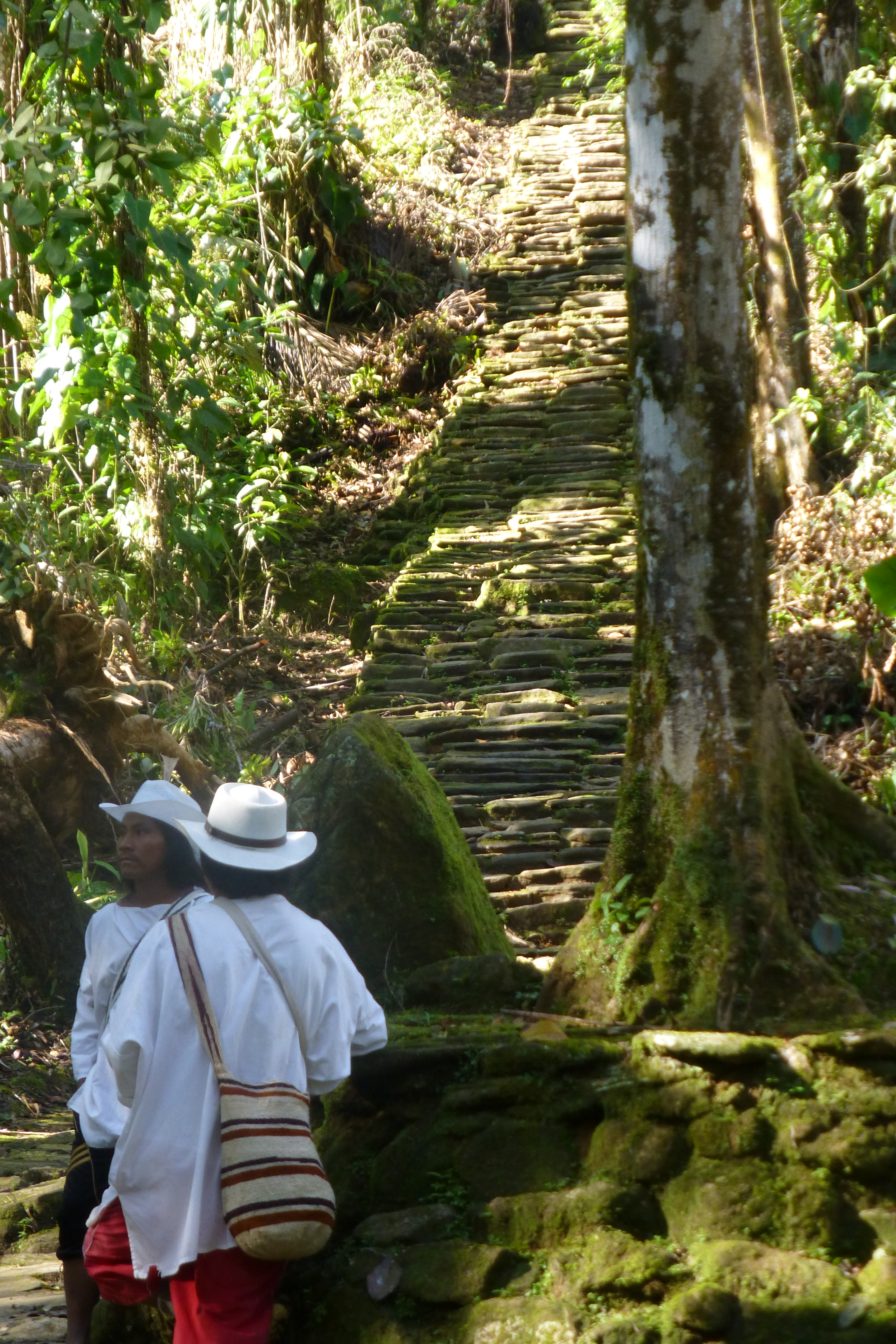 On our way there, we have yet another river crossing. I optimistically roll up my pants, but the river is up to my bum today, so it was a useless gesture. Shortly after leaving the river, we come upon the 1200 stone steps that lead up to Ciudad Perdida. They are shaded by the trees, so the steep steps are slick—and in some spots, so steep that it feels like climbing a ladder. I begin the slow process of climbing up. I feel like I’m about to approach the grand prize—the whole object of this crazy survivor game—while David notes that it really should be 1198 steps since two are missing, forcing us to find a way around them. Ah, Super Chico.