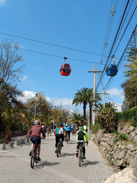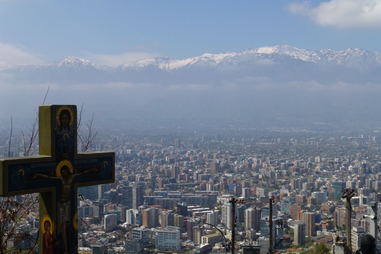 Speaking of which, David has now returned to the U.S. and I have officially embarked on the work portion of my stay. Thus, the less interesting part of my trip begins, which will naturally be full of work—but also my attempts to forge a new routine, one that includes hunting down the city’s best coffee (oh curse the long-reaching fingers of the Nescafe scourge!), getting a handle on my allergies (it’s spring here, with new and wonderful pollen to get used to), and discovering a new running/hiking routine so I can stay in shape before my trek. To this end, this past Sunday I visited Cerro San Cristobal, which is the peak of the second highest point in Santiago and a part Parque Metropolitano, the largest urban park in Chile. At the top is a church and a large statue of the Virgin Mary, standing watch over the city below. One can take a funicular to the summit, but I opted to hike on a steep trail (complete with switchbacks, of course), which proved to be of a challenging-enough pitch that I’ve decided to make this a regular activity to help me prepare for my trek.