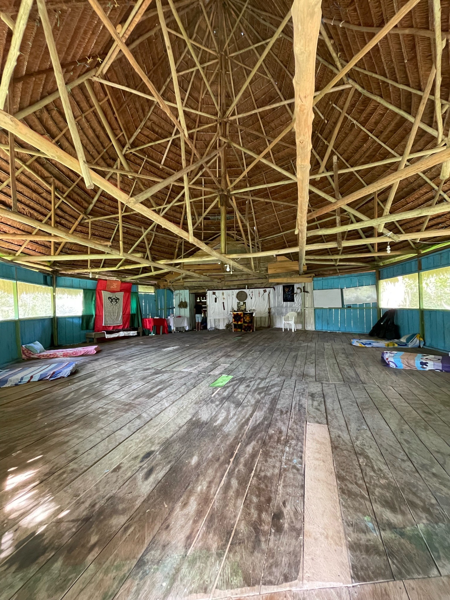 He began the ceremony with a few invocations in his native language, calling in the plant spirits and the spirit of ayahuasca in particular. Then, he offered the first drink of ayahuasca. I went up to the altar and took the drink in both hands, downing it quickly so the taste wouldn’t linger too long in my mouth. The taste of ayahuasca is unparalleled and difficult to describe. Suffice it to say that it’s acrid, bitter, and foul tasting, such that I have an immediate physical reaction: my face contorts in disgust and shivers run down my spine (even just writing this and merely thinking about it results in the same physical reaction). After drinking it, I hurry back to my mat to swish water in my mouth and spit it out in hopes of getting some of the taste out. After we each take our drink, we all sit or lie on our mats. The lights go out, plunging the maloca into complete darkness, with only the red, burning ends of the mosquito coils in sight. In the darkness, Eladio begins the evening’s icaros, which are songs sung to call the spirits to the maloca to join us in the evening’s journey. I expected Eladio’s icaros’ to be very different from the ones I’ve heard before, but I found myself soothed when I recognized many of the songs from the ceremonies I attended in the US. It makes sense: he’s their teacher.