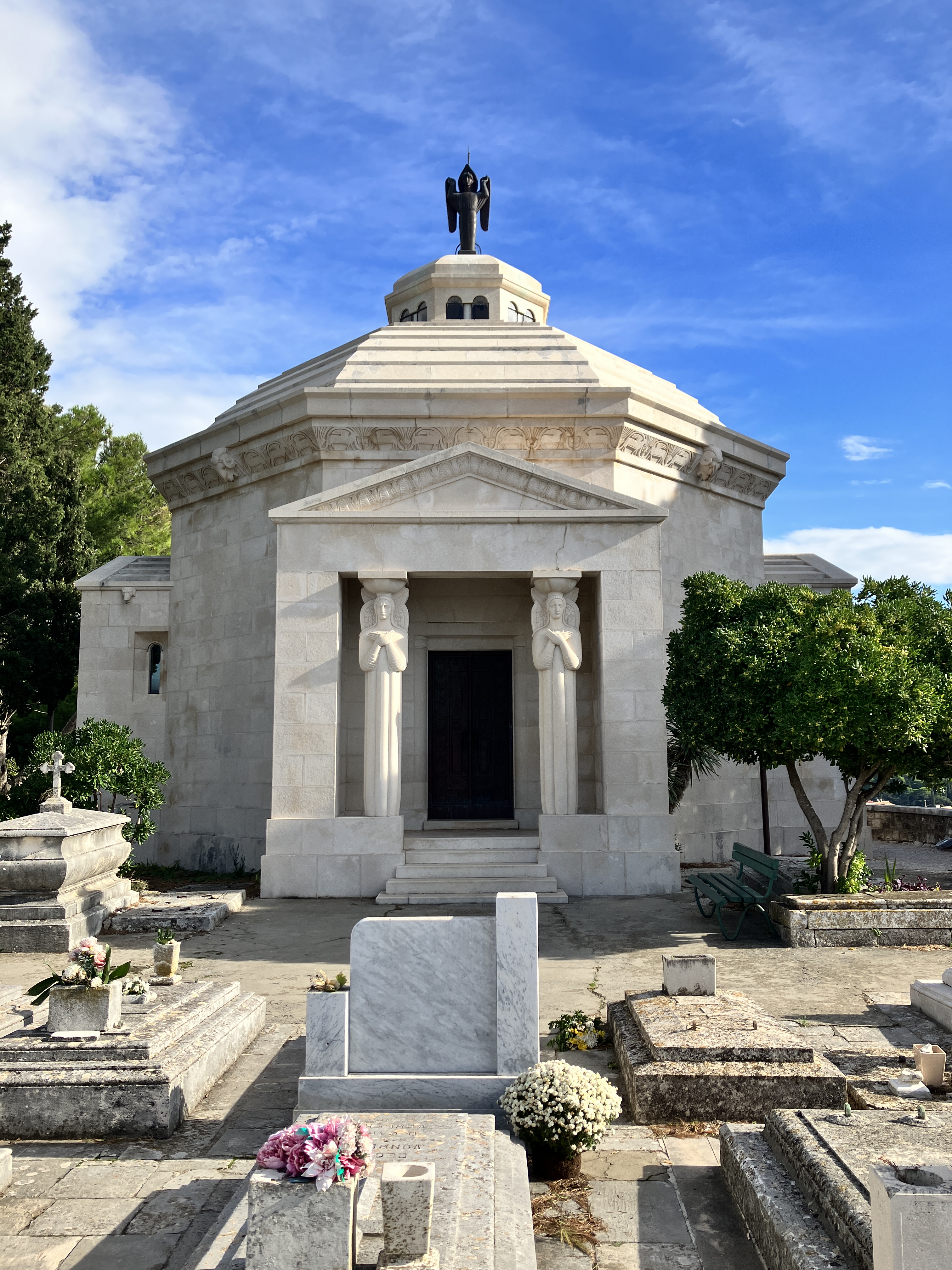 Cavtat is a sleepy little beach town about 9 miles south of Dubrovnik and a lovely spot to nab a bit of peace and quiet. The town is actually older than Dubrovnik, having been founded by the Greeks in the 6th century. We spent a peaceful afternoon simply wandering around the rocky beaches, having coffee at a spot recommended by the guidebook as “one of the few places in Croatia where you can get pastry and a coffee at the same time” (this is one of Croatia’s charming quirks), and walking up to one of the sights of Cavtat, a mausoleum that is the work of the famous Croatian sculptor and architect, Ivan Mestrovic. As we climbed up the steep pathway to the mausoleum, we met Ivo, an old Croatian gentleman who appeared to be taking a break from heavy yard work as he sat upon a bench smoking a cigarette. He was dressed in work clothes with a navy blue smock and black rubber boots. When he saw us, he asked if we were going to the mausoleum. When we replied that we were, he proceeded to tell us about its symbolism, which then wove itself into a lengthy, but eloquent lesson about Croatia’s history—a lesson so detailed and broad that it sounded as though it could only come from a history teacher. During his lesson, Ivo covered topics such as the respect and autonomy of women in this region, war, and Croatian inventions. He was clearly proud of his country and wanted to share not only its history, but all of the little-known ways in which Croatia has impacted the world, ending each salient point with a glint in his eye and a “Can you imagine?”