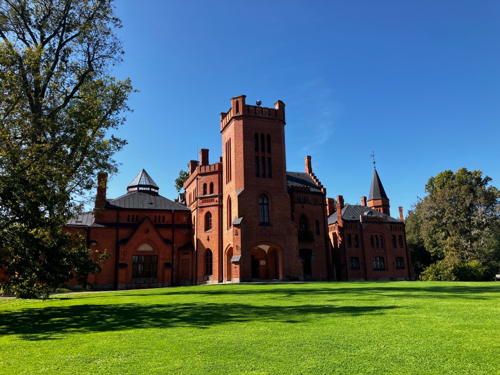 “Estonian Switzerland” (Estonia) – 27 mi from Otepaa to Sangaste. I have a few choices of routes today, one of which is longer and includes gravel (my fave!). The ride starts in a gorgeous park with a well-paved pathway. Otepaa is a popular ski destination, which becomes apparent as off-season skate skiers whiz by me on their roller skis. Eventually, I hit a main road that climbs past the ski resort and delivers me to the gravel road…which is gorgeous. It’s the powder-day equivalent of gravel (gravel cyclists will appreciate this: not too thick, not too pothole-y, not too many washboards). I couldn’t ask for better. I’m passed by cyclists riding proper gravel bikes and choke back a feeling of bright green envy. The gravel road climbs up a long, steep hill that culminates in a watchtower that offers a view of the surrounding forest. It’s a bit insulting to climb the tower’s 10 flights of stairs after riding up the hill in a Buick, but whatever, it’s a gorgeous view with forest as far as the eye can see. Eventually, after riding through more countryside, the gravel sadly comes to an end as it joins a road that will eventually take me to Sangaste Castle.