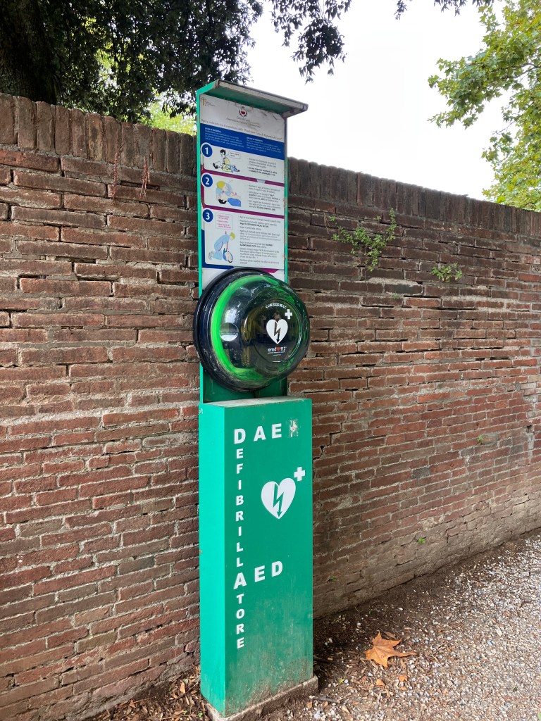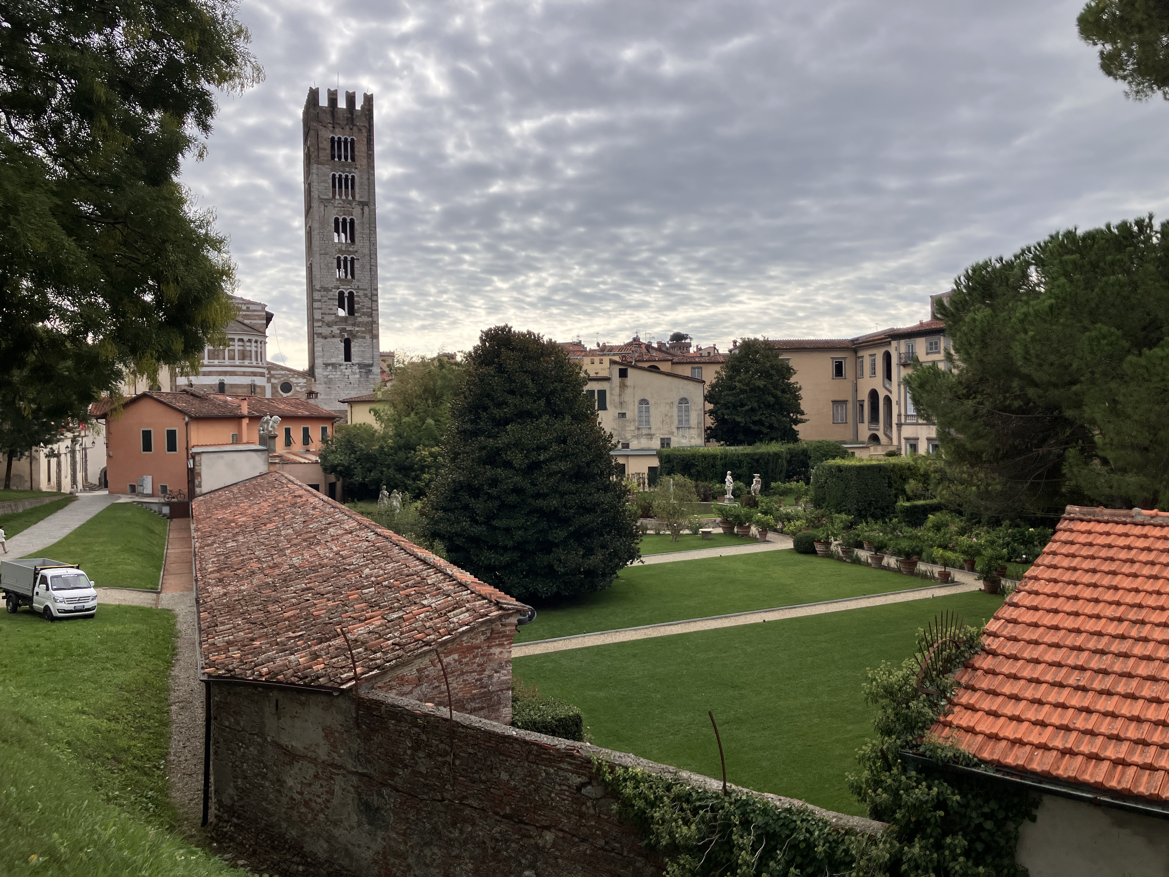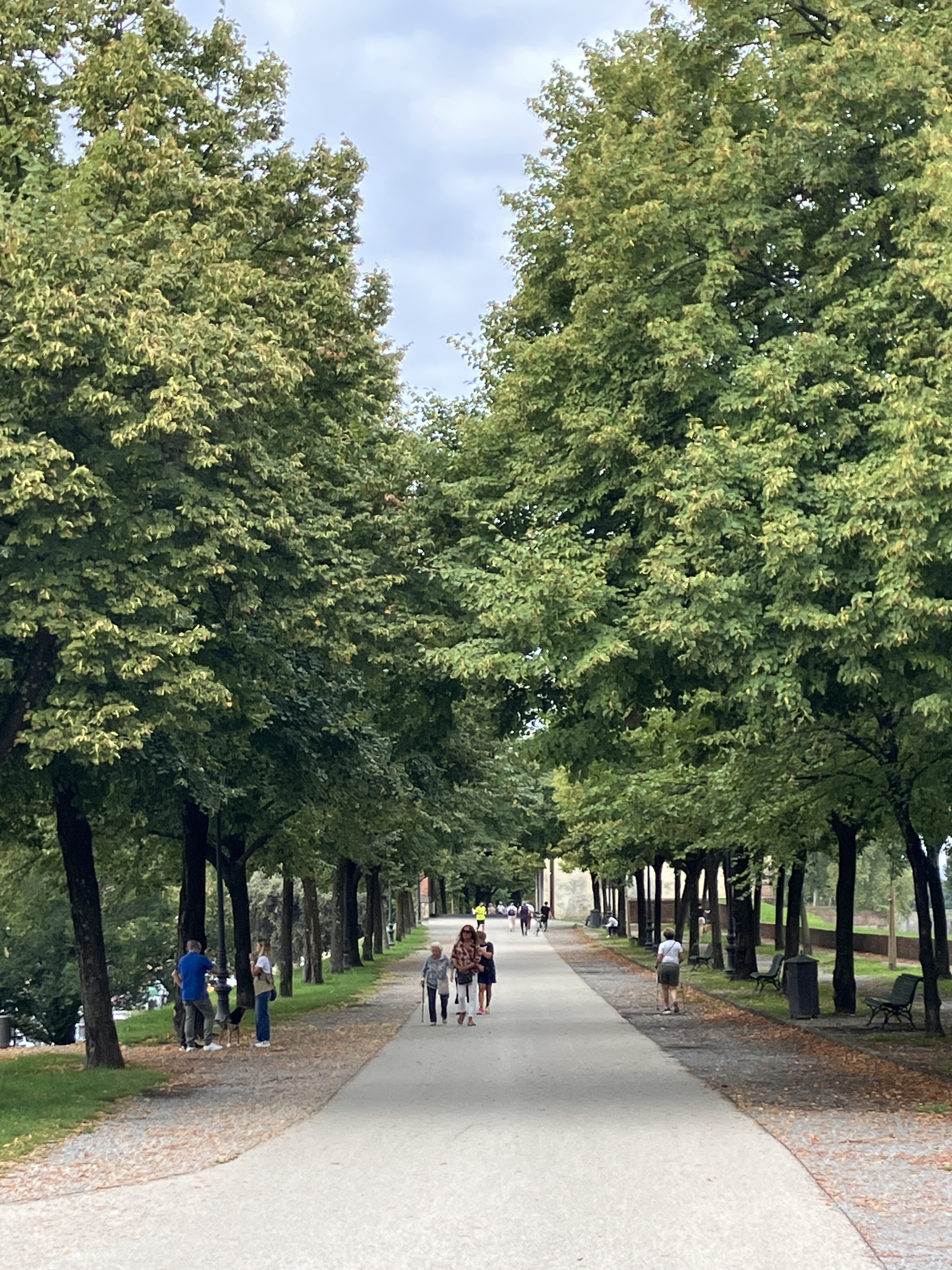 Not knowing how much free time I’d have once the rest of my group arrived, I used my first morning in Lucca to do some sightseeing. I started with Lucca’s most prominent landmark: the city walls. These beautifully preserved Renaissance-era walls are a mixture of stone and earth and encircle Lucca’s old town. The current structure, which was rebuilt in the 16th century, replaced Roman-era walls that date as far back as 180 BC. Atop the wall is a wide, pleasant path that spans the entire length of the wall, which is about 2.5 miles in circumference. Normally, this would be an inviting spot for a morning run, but anticipating the rides ahead, I settled for a lazy stroll (I mean, I don’t want to exhaust myself before the cycling even starts, right?).
