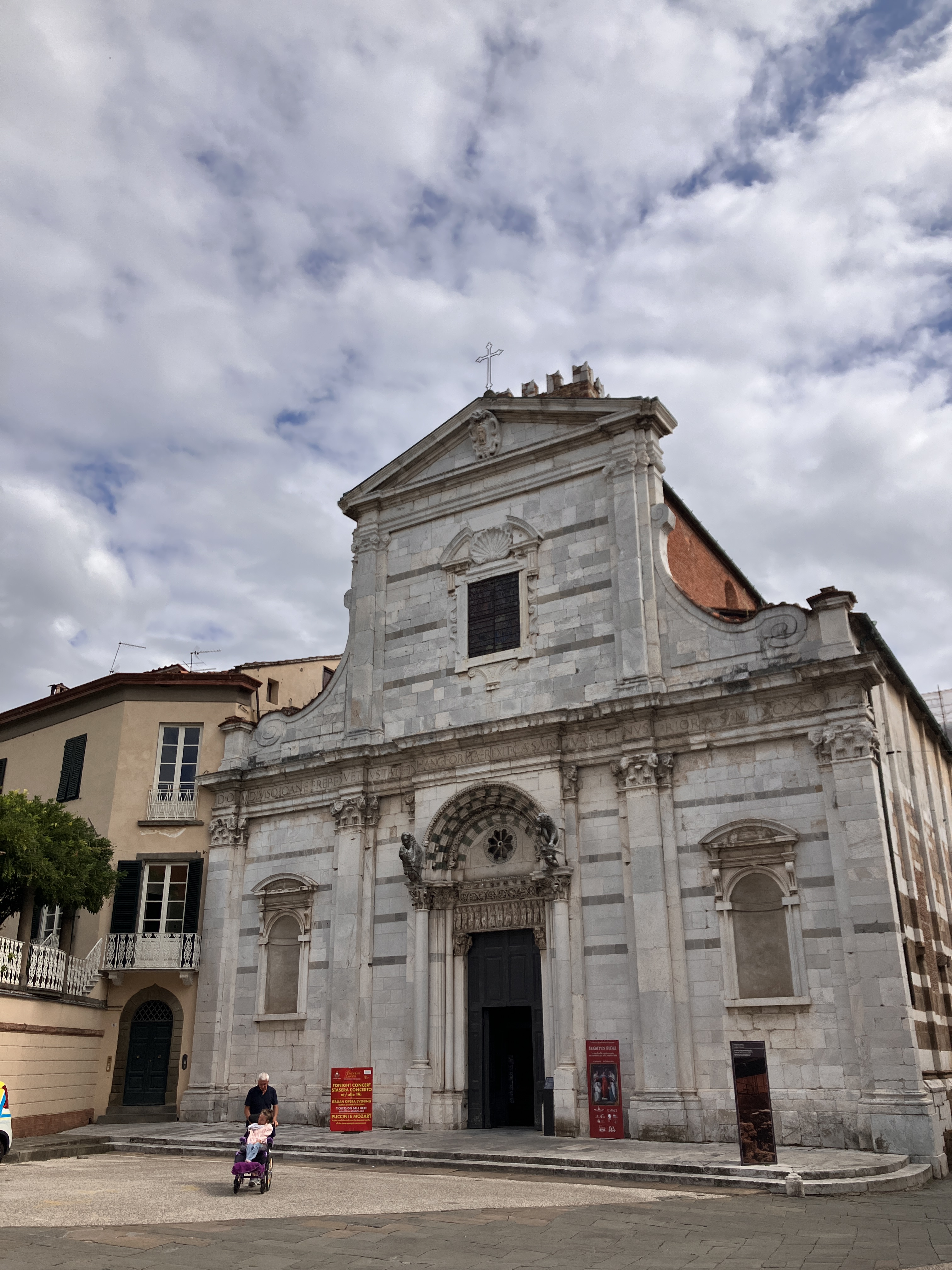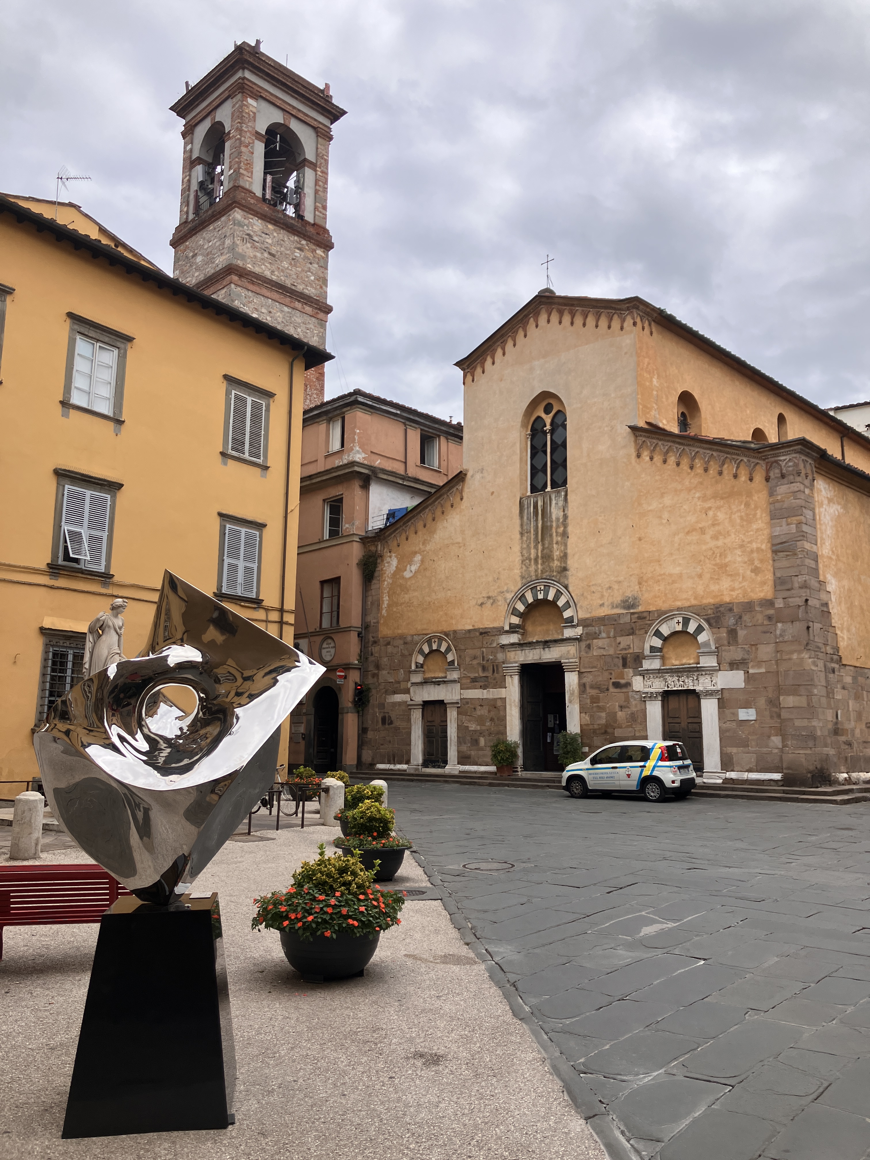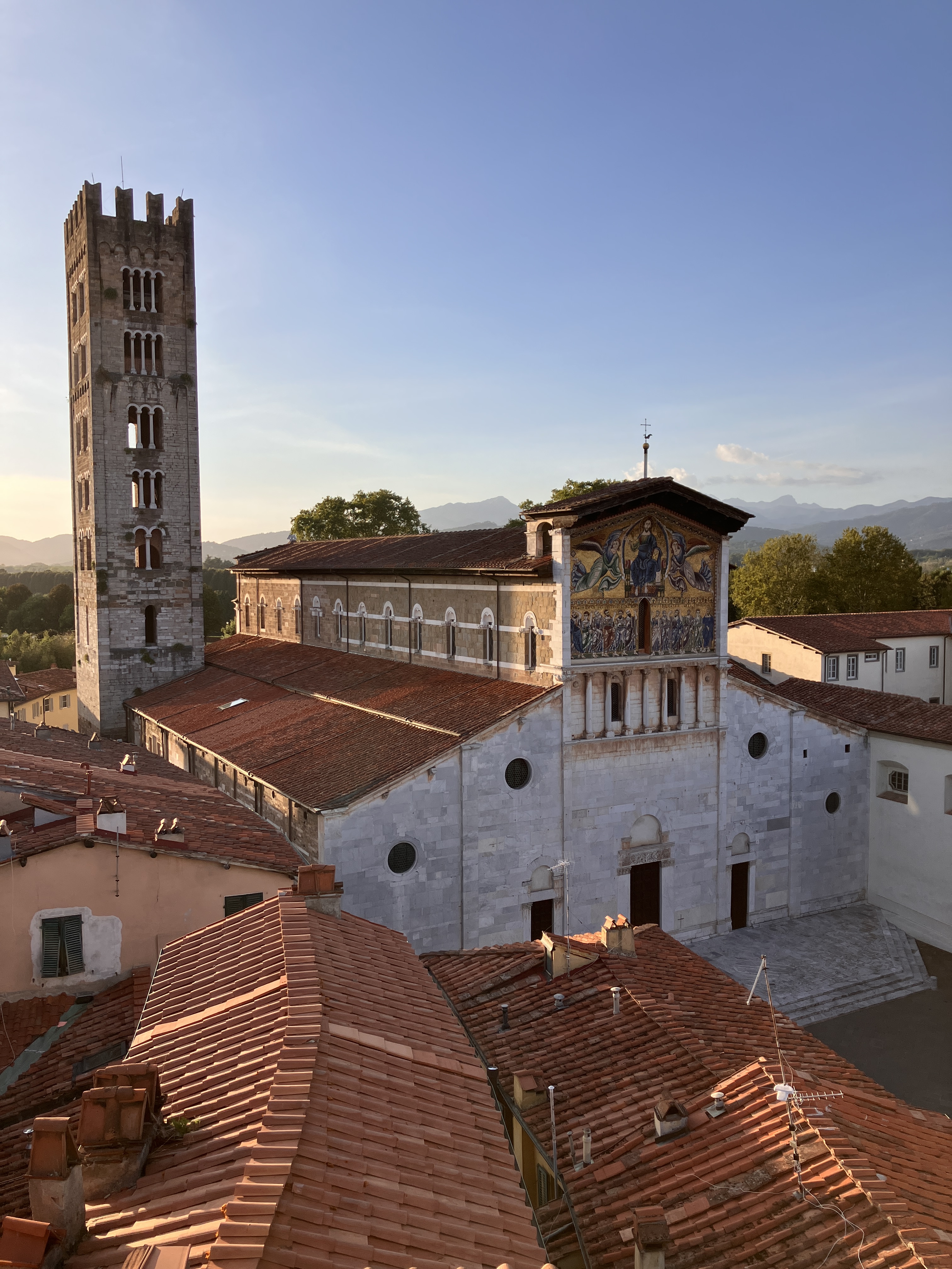 After energizing myself with my walk, it was time to enter the old town itself. There were no walking tours available (it’s a weekday in the off season), so I used an interactive map to guide me to all the sites, starting with the Guinigi Tower, which was built in the 14th century by a wealthy merchant family. Aside from the fact that it’s one of the few towers that remain in a city that was once full of them, Guinigi is unique because it’s the only one with a garden of oak trees on top of it, which are meant to stand as a symbol of rebirth. I climbed the 233 steps to the top of the tower and enjoyed a beautiful view of the terracotta roofs below and the mountains beyond.